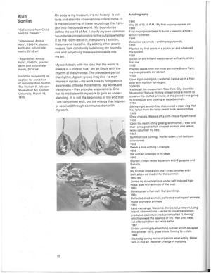 Publication developed for a conference titled "Arttransition" (also named as "Art Transition") examining new directions in intersections between art, science and technology at the Massachusetts Institute of Technology's Center for Advanced Visual Studies in 1975 held in collaboration with the University Film Study Center. Includes textual and visual submissions by contributing artists concerning environmental art, developmental media work, arts education, communication, video art, film, celebrations, and intersection of art, science and technology.