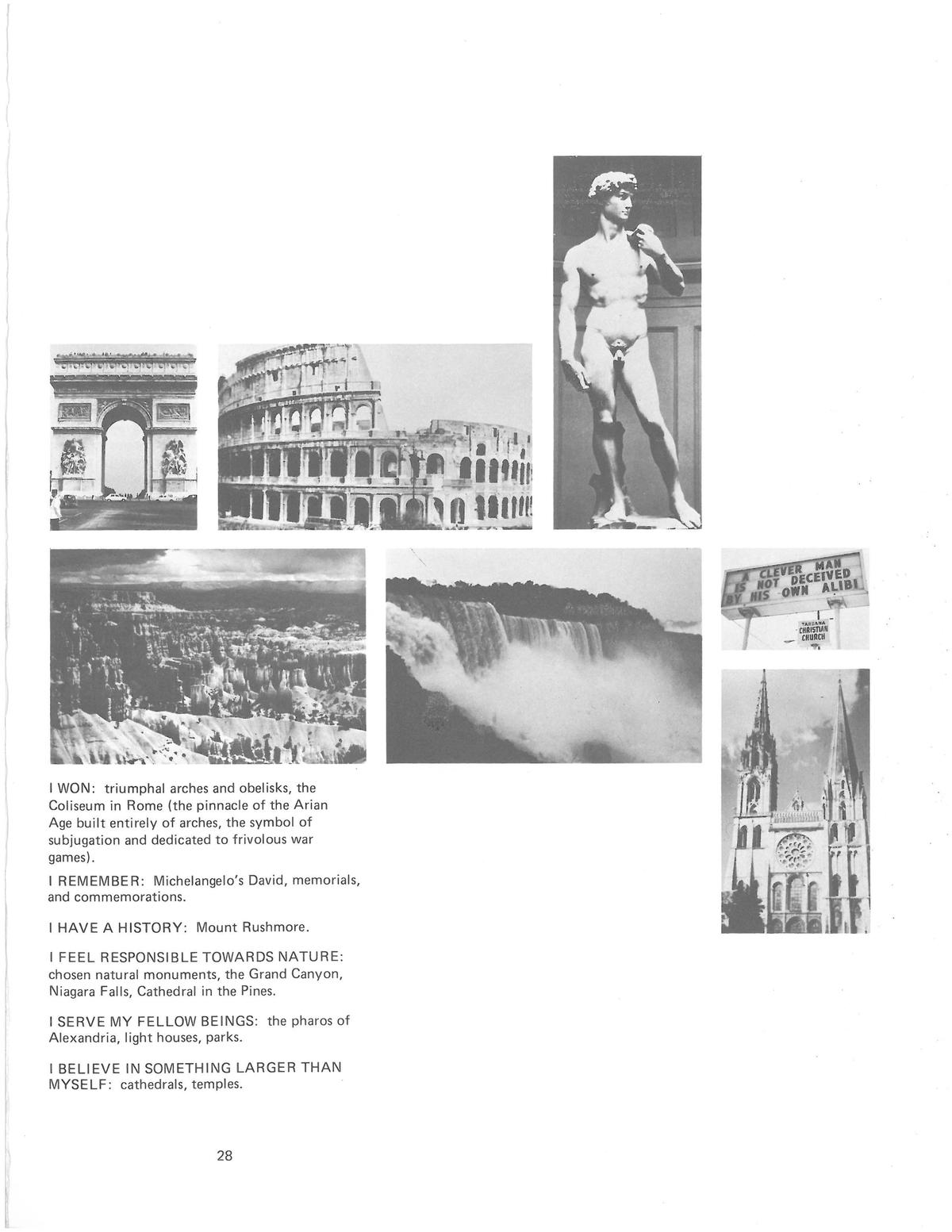 Exhibition catalog for second part of "Boston Celebrations" exhibition by fellows from the Center for Advanced Visual Studies at the Boston Institute for Contemporary Art, titled "You Are Here: Environmental Art." Includes essay submissions by the artists concerning topics in environmental art and civic art, descriptions and visual depictions of works in the exhibition, and profiles of the artists.
