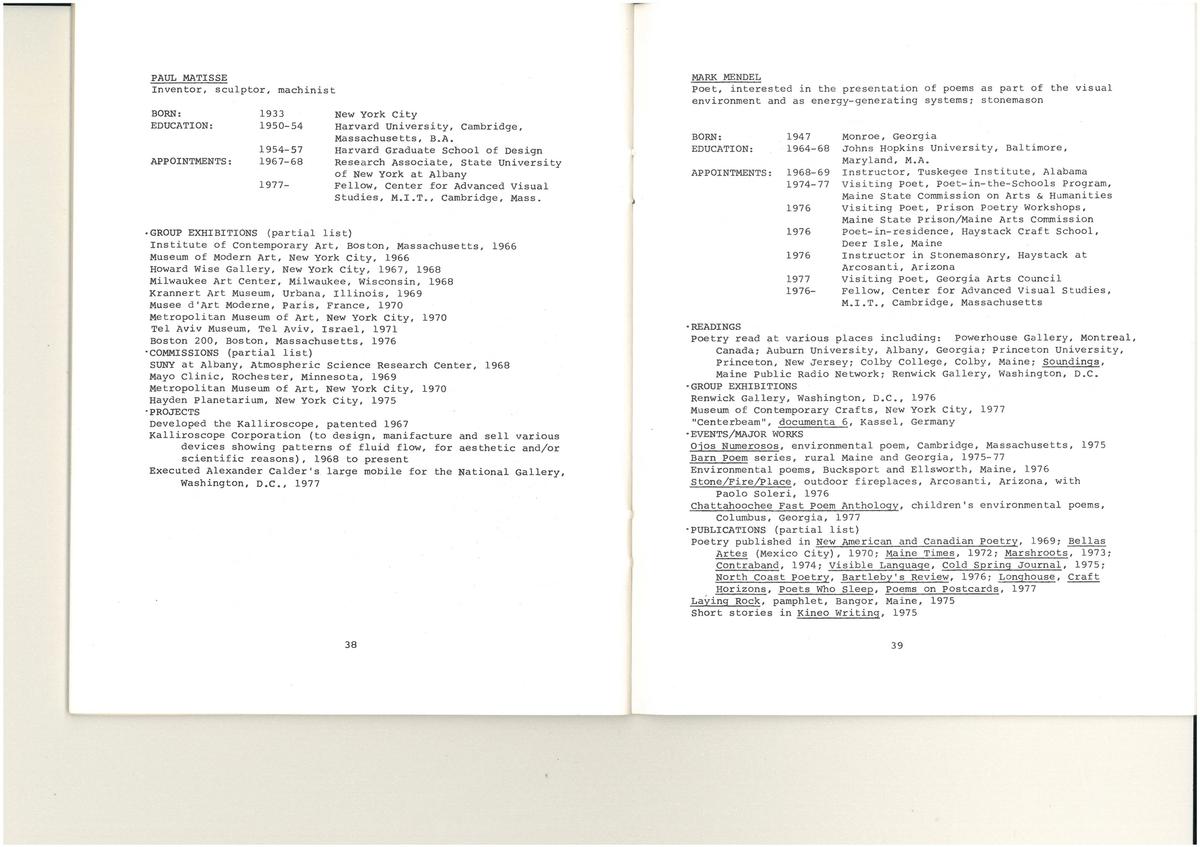 Listing of courses offered by MIT Center for Advanced Visual Studies for the spring semester of the 1977-1978 academic year. Course offerings in this publication were for the Masters of Science in Visual Studies graduate degree program, also referred to as SMVisS or MSVisS.