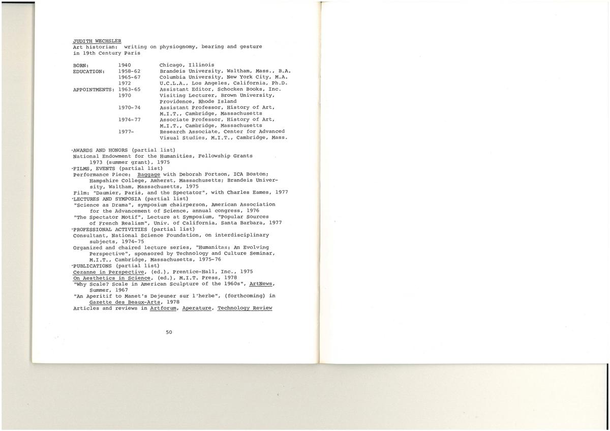 Listing of courses offered by MIT Center for Advanced Visual Studies for the spring semester of the 1977-1978 academic year. Course offerings in this publication were for the Masters of Science in Visual Studies graduate degree program, also referred to as SMVisS or MSVisS.