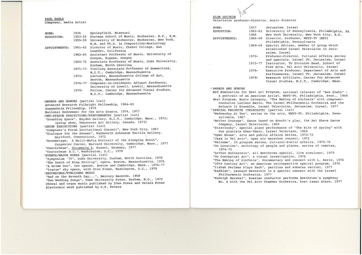 Listing of courses offered by MIT Center for Advanced Visual Studies for the spring semester of the 1978-1979 academic year. Course offerings in this publication were for the Masters of Science in Visual Studies graduate degree program, also referred to as SMVisS or MSVisS.