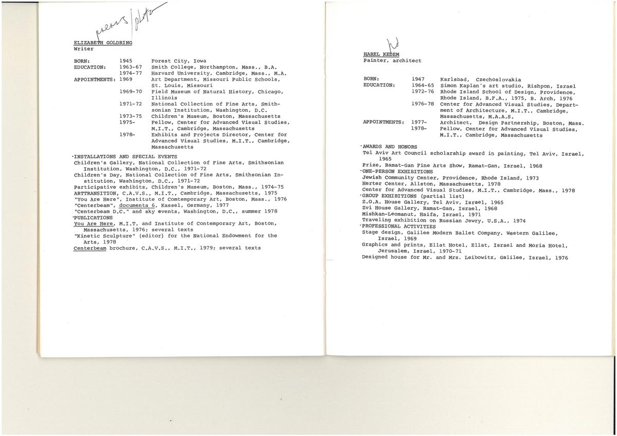 Listing of courses offered by MIT Center for Advanced Visual Studies for the spring semester of the 1978-1979 academic year. Course offerings in this publication were for the Masters of Science in Visual Studies graduate degree program, also referred to as SMVisS or MSVisS.