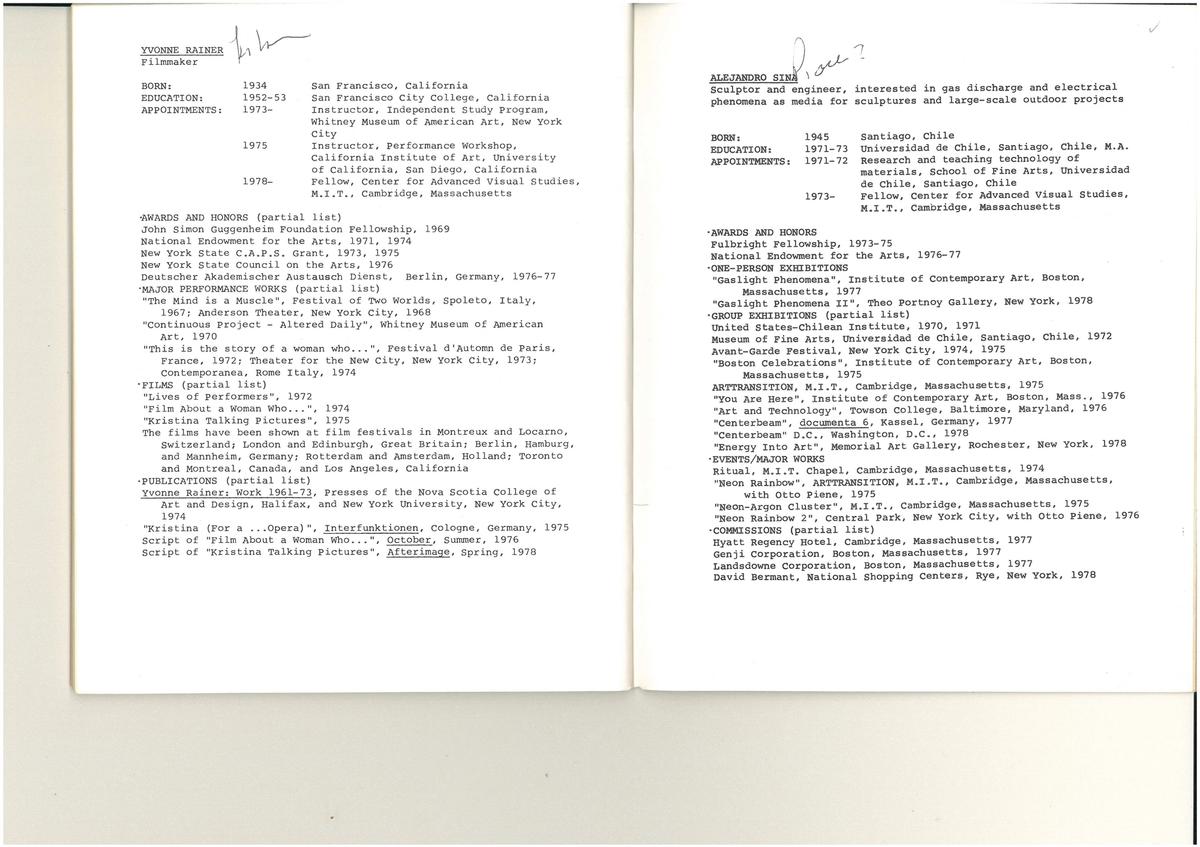 Listing of courses offered by MIT Center for Advanced Visual Studies for the spring semester of the 1978-1979 academic year. Course offerings in this publication were for the Masters of Science in Visual Studies graduate degree program, also referred to as SMVisS or MSVisS.